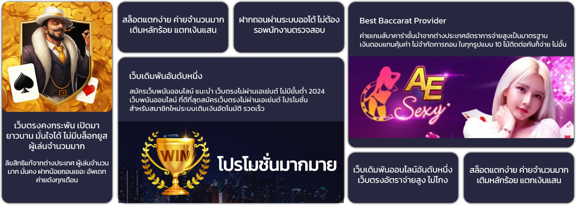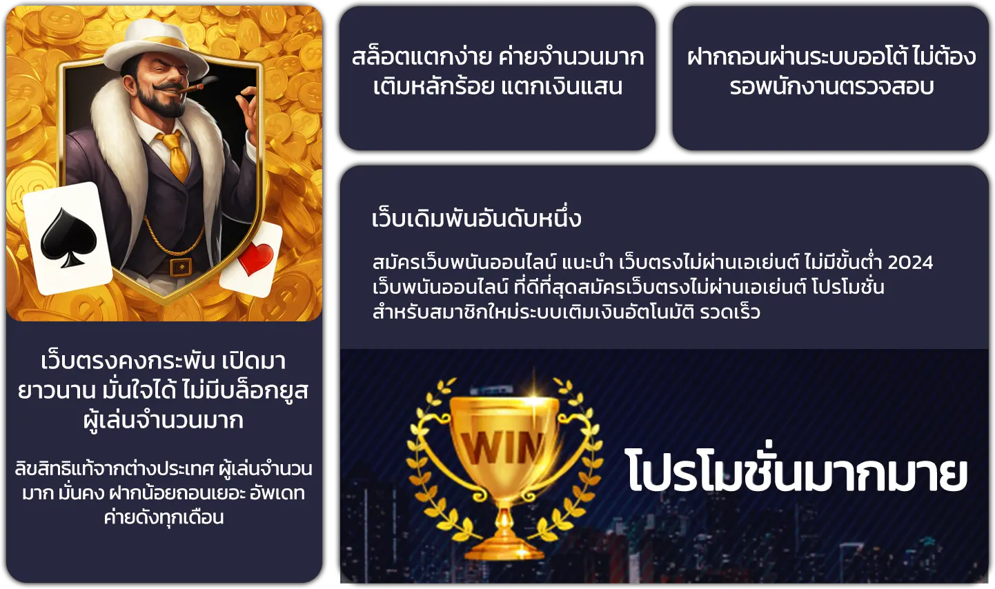 ร่วมเข้ามาเล่น คาสิโนออนไลน์ ได้กันเต็มเปี่ยมกับความเพลิดเพลินใจได้ตลอดเวลา 24 ชั่วโมง ได้ทั้งมือถือหรือว่าอุปกรณ์ที่เชื่อมต่ออินเตอร์เน็ตได้นั่นเอง พร้อมมีทีมงานคอยให้รอคำปรึกษาแก้ปัญหาทุกกฎเกณฑ์ของ เกมคาสิโน บนโลกใบนี้ สมัครเข้าเล่นได้ง่ายดายไม่กี่ขั้นตอน พร้อมรับสิทธิพิเศษที่จะตามมานับไม่ถ้วน